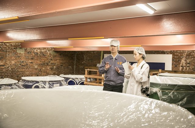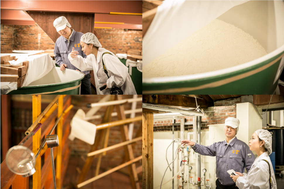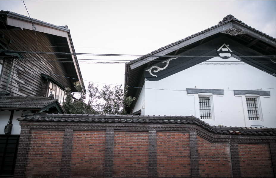 八戸酒造に到着してまず、その外観に驚かされます。「レンガ蔵、土蔵、木造の母屋、そしてコンクリートの建物と、バラバラの時代に建てられた建物が、同じ敷地内にこれだけ揃っているのは民間企業としては珍しいそうですよ。大正時代に建てられた建物は、文化財などにも指定されています」と案内してくれたのは、9代目の駒井秀介(ひでゆき)専務。